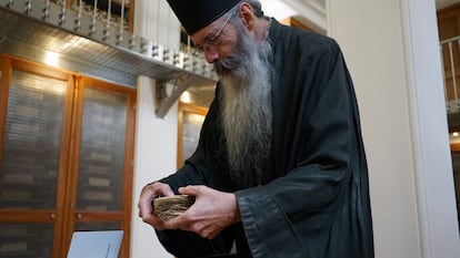 “En aquel momento nos preguntamos qué valía la pena guardar en una caja y establecimos varias categorías: si el manuscrito tiene encuadernación bizantina, si supera una cierta edad, si tiene iluminaciones o si es significativo de cualquier otra forma lo guardaríamos en caja”, recuerda el padre Justin. “Para cuando aplicamos las categorías, de los 3.300 manuscritos decidimos guardar 2.000”, recuerda riendo. “Ninguna biblioteca tiene dos tercios de su colección en cajas. Pero esta se lo merece porque aquí son muy antiguos y relevantes”. EL PAÍS es el primer medio que informa sobre este proyecto de conservación.