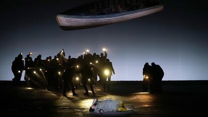 En Masa y poder, una exhaustiva taxonomía de las turbas y los colectivos humanos, Elias Canetti explica el funcionamiento de las que bautiza como “masas de acoso” (Hetzmassen). Su objetivo es muy claro: “La masa sale a matar y sabe a quién quiere matar. Con decisión incomparable avanza hacia esa meta y es imposible escamoteársela. Basta con dársela a conocer, basta con comunicar quién debe morir para que se forme la masa. (...) Todos quieren participar, todos golpean. (...) Todos los brazos salen como de una misma criatura”. El Prólogo de Peter Grimes, tal como lo ha imaginado Deborah Warner, parece una perfecta plasmación visual de esta descripción. Los habitantes del Borough, armados con linternas que acentúan su apariencia espectral, acosan a Grimes, ovillado en el suelo y envuelto en una red de pesca a modo de sábana, que vive el interrogatorio inicial de la ópera como una pesadilla en medio del sueño, lo que lo sitúa en la estela del personaje original de George Crabbe, un rufián propenso a los terrores nocturnos y a sufrir apariciones de sus antiguas víctimas. Una barca suspendida en lo alto refuerza la atmósfera onírica y un sosias vestido igual que él, que cae braceando desde el cielo como si estuviera ahogándose, ejerce de presagio de su propio final. Por eso volveremos a verlo justo antes de caer el telón, cerrando el círculo.