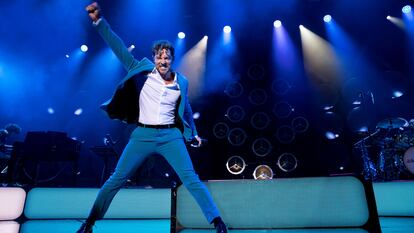 Pasan los años por encima de nosotros, como apisonadoras. Pero por el almeriense diríamos que no mucho. Aparenta menos de los 42 junios que le adjudica el DNI, le sienta razonablemente bien el traje azul turquesa, incluso ha aminorado su tendencia primigenia al manierismo y el aspaviento, al grito y la tremolina, a esa pose original de cantante de orquesta y variedades. Y lo más meritorio: goza aún del favor de un gran público dispuesto a ungir cada uno de sus movimientos, por predecibles que resulten.