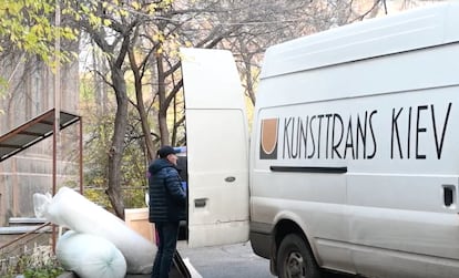 Los cuadros entraron el domingo 20 en el Museo Thyssen en Madrid. A su llegada, la única vicisitud fue entenderse con los conductores, que solo hablaban ucranio. “Ante la incapacidad de comunicarnos en inglés durante la descarga de las obras, encontramos la solución con un traductor online, y nos fue de maravilla”, cuentan desde el departamento de Registro del Museo. La empresa de transportes que finalmente trasladó las piezas tuvo que ser subcontratada por la única que se presentó al concurso público convocado por el Thyssen, que en su primer intento quedó desierto. Nadie quería arriesgarse.