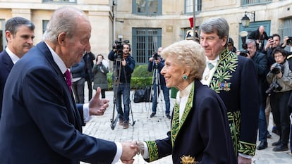 La conversación con Debray se desarrolla el jueves por la tarde, durante la recepción posterior al ingreso de Vargas Llosa a la Academia. A unos metros, un hombre de pie y con bastón: Juan Carlos. A su lado, su hija Cristina y cerca, dos guardaespaldas que velan, entre otros cometidos, que no haya preguntas incómodas y susceptibles de aparecer en titulares de prensa. Hay cola para saludarlo: académicos, personalidades, invitados anónimos, españoles y franceses, latinoamericanos. Algunos se hacen fotos con él. Cuando, un par de horas antes, el rey emérito había entrado en la sala de plenos de la Academia para asistir a la ceremonia de ingreso, fue recibido con aplausos.
