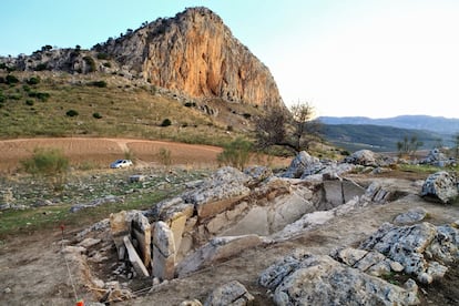 Una de las muchas rarezas del dolmen de Menga, ubicado en Antequera (Málaga), declarado Patrimonio Mundial y construido hace unos 5.600 años, es su orientación. Si la mayoría de las construcciones del Neolítico se alinean hacia la salida del Sol, este lo hace a 45 grados, justo hacia la Peña de los Enamorados, monte calizo cuyo perfil se asemeja al de un rostro humano tumbado. Allí, bajo su barbilla —donde hay una alta pared conocida popularmente como Tajo Colorao—, se ubica un dolmen funerario hallado en 2020 que, según una reciente investigación, también tiene esa misma orientación. Ambas miran hacia esa montaña que los científicos creen que tenía un papel de extrema relevancia para los pobladores de la zona en la etapa neolítica. Tanta, que las construcciones se dirigían hacia ella, otorgándole más importancia que al Sol.
