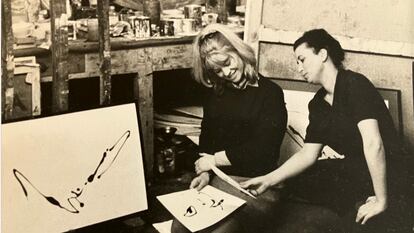 Werba cursó Filosofía y Letras en Buenos Aires y, ya de regreso a Francia, estudió pintura en París junto a Fernand Léger y André Lhote. En los cincuenta, casada con el periodista estadounidense Hank Werba, cruza los Pirineos y descubre España. “Mi padre era entonces el corresponsal para Variety”, recuerda por correo electrónico su hijo menor, Marco Werba, nacido en España. Eran los años de las grandes producciones de Hollywood a las afueras de Madrid, en los estudios Bronston, y de las noches etílicas en el bar de Nicholas Ray, en cuya inauguración colgaban los cuadros de Nadia Werba. “La situación no era fácil por el régimen de Franco, y varios años después mi padre pidió trasladarse a Roma. Mi madre fue una pintora de éxito en España y muchas actrices famosas, como Julie Christie, vinieron a visitarla a su estudio en Madrid”. En un recorte de la época, Werba —que estuvo entre los artistas que representaron a España en la Bienal de Venecia de 1964— aparece junto a otras pintoras como María Droc, Juana Francés o Isabel Santaló durante la inauguración de una exposición colectiva en la galería Niebla. El titular: “Cuatro mujeres ante el lienzo”.