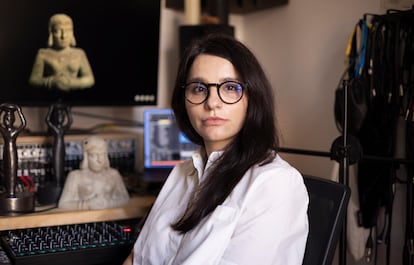 Así, la réplica de Statue, una estatua femenina babilónica, produce sonidos cuando Dania pasa sus dedos sobre su cabeza. En Bowl, su réplica del cuenco iraní de la Edad de Bronce, el sonido se adapta al agua de su interior. Entre otros instrumentos tan hipnóticos como el sonido que desprenden, destaca Nimintabba, una tabla en sumerio que Shahib memorizó y aprendió para trasladar ese lenguaje a un sintetizador. Para el directo, además, Shihab se había aliado con el director Mau Morgó, encargado del aspecto visual del show en el escenario del Stage+D del Sónar. Un debut que no pasará en Barcelona, sino en una versión reducida de 25 minutos en el Cafe Oto de Londres el próximo 16 de junio. “Al menos esos instrumentos sonarán cerca del Museo Británico”, apunta.