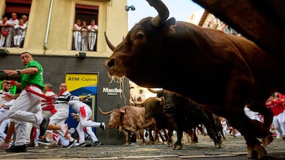 No hubo encontronazo con los tablones de la curva que dan paso a la calle Estafeta, prueba de los que victorianos venían avisados, y emprendieron la recta piel con piel, amagando con la mirada hacia quienes se apretaban contra las paredes, pero sin un derrotes, sin un mal gesto y solo con el objetivo de correr y correr hacia no se sabe dónde.