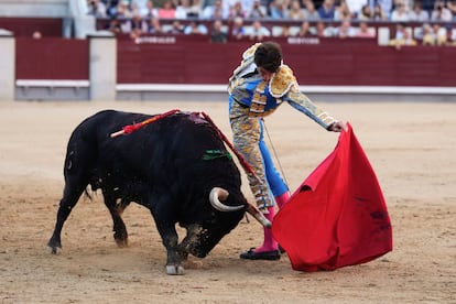 Y así lo explicó en su primero, un astifino toro de Fuente Ymbro manso, noble y escasa vida en sus entrañas. Tras recibirlo con una verónica y media de muy buen trazo, inició la faena de muleta con cuatro ceñidos estatuarios, las zapatillas atadas al suelo, y un par de tandas con la mano derecha en las que la severa actitud del torero chocó contra la escasa clase y menos fortaleza de su oponente.