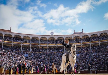 Abrió la mañana el rejoneador Hermoso de Mendoza, quien volvió a mostrar su contrastada maestría, aunque solo fue ovacionado al matar de un rejón muy trasero.