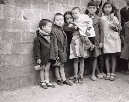 La guerra civil española atrajo a numerosos fotógrafos extranjeros, como Robert Capa o David Seymour, fascinados por un conflicto que funcionaba como banco de pruebas político y militar. En el frente y en la retaguardia, estos autores, junto a fotógrafos españoles como Agustí Centelles o Alfonso Sánchez Portela, capturaron la carestía, no solo como una consecuencia, sino como una herramienta de guerra deliberada. Porque, como señala Alba Nueda Lozano en el libro El hambre como arma. Escasez republicana en la guerra civil (1936-1939) (Comares, 2024), la falta de alimentos no fue solo una consecuencia del conflicto, sino una estrategia para desmoralizar y debilitar al enemigo. Un buen ejemplo de ello fue el lanzamiento de bolsas de pan blanco desde aviones del bando sublevado sobre Madrid en 1938, acompañadas de mensajes como “En la España Nacional, Una, Grande y Libre, no hay un hogar sin lumbre ni una familia sin pan”.