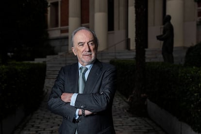 Cuando el 20 de diciembre de 2018, Santiago Muñoz Machado (Pozoblanco, Córdoba, 76 años) resultó elegido director de la Real Academia Española (RAE), se apostó bajo el retrato de uno de sus antecesores para hacerse una foto. Era Antonio Maura, el precedente jurista como él al frente de la institución, un siglo antes. Sus compañeros habían decidido adoptar una decisión quirúrgica. Apartarse de un liderazgo filológico como el de sus cuatro inmediatos antecesores y dar las riendas a un ensayista, catedrático de Derecho y también abogado con una agenda impresionante en los círculos de quienes mueven el dinero.