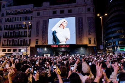 Al final, mucha gente salió decepcionada de la Plaza de Callao porque apenas se quedó con un saludo de la artista desde el ventanal del cine Capitol: ni canto ni habló.