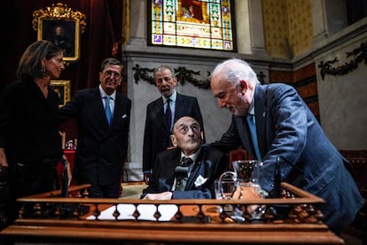 El director hizo énfasis en una larga historia de tiranteces con el poder. No solo en España, también, ante todo, América, donde, según Machado, “las Academias no siempre han contado con el apoyo de sus gobiernos”. La apertura del curso académico cobraba su simbología. Se ha celebrado desde su creación, en 1713, “salvo algunas interrupciones”. Entre ellas, la Guerra Civil. El conflicto que dio lugar al franquismo y a la expulsión al exilio de varios de sus miembros también tuvo sus rifirrafes cuando los compañeros que quedaban dentro del país se negaron a quitarles sus sillones y sustituirlos por nuevas incorporaciones, como hubiera deseado el régimen.