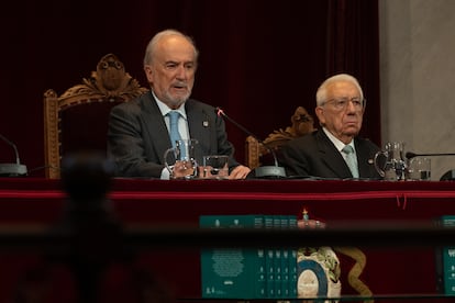 Álvaro Pombo inicia el curso académico con un brillante discurso y Muñoz Machado presenta el ‘Diccionario histórico’ en 10 tomos