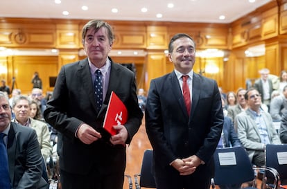 Después de su encuentro con la prensa, García Montero compareció en el auditorio junto al ministro de Exteriores José Manuel Albares, quien firma uno de los artículos del nuevo estudio del Cervantes, sobre el papel del español en el ámbito diplomático y jurídico. “Promover el español en el mundo es una tarea cultural y una acción política, social y económica. A través de nuestras lenguas, también las cooficiales, proyectamos un mensaje de entendimiento”, subrayó el ministro, quien dijo estar comprometido en que las lenguas de España tengan toda la “oficialidad que merecen en la Unión Europea” y tener en el Cervantes el “buque insignia” para la promoción del español, una tarea en la que “nadie sobra”.