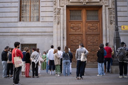 El grupo llega a Callao, al antiguo Hotel Florida, que ahora es un Corte Inglés. El audio los transporta al lugar que fue encuentro de artistas y corresponsales en la guerra civil. Belén Landaluce y Pedro Rubio son dos de los intérpretes de la pieza. “Parece que [la guerra] no nos toca y en realidad les tocó a nuestros abuelos y, por lo tanto, marcó a nuestros padres”, dice Rubio. Él tiene 39 años y ella 29. “Yo tengo dos abuelas vivas, una de 90 y otra de 100, que nacieron en el 25 y en el 35. Lo tenemos más presente de lo que pensamos”, reconoce la actriz. Para ellos ha sido “un regalo” ser parte del elenco. Entre el bullicio del domingo madrileño, reflexionan sobre la ciudad: “El día a día se impone, la rutina se impone. Vas por la calle sin verlo y es tan sencillo como parar un segundo y darte cuenta de que esto está ahí, todavía”.