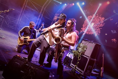 “En nuestra casa se ponía mucha música y mucho folclore latinoamericano. Y en las fiestas de pueblo asturianas siempre hay música latina, porque la emigración tiene mucho peso. Luego ya es una cuestión de cada uno no quedarse en la superficie o explorar”, cuenta Manuel (31 años, Oviedo), que estudia saxofón desde los 8 años, es licenciado en Bellas Artes, ha expuesto las pinturas con las que se gana la vida en diferentes países y es hermano de Alberto. “Intento meter el saxo de una manera que sirva y que contribuya a la canción. También incorporarle efectos de sonido, distorsionarlo…”. De aquella educación musical familiar le viene a la banda la amplia paleta de instrumentos que componen sus melodías. A la guitarra, bajo, batería y teclado se les suman el bombo legüero, el tres cubano, el charango o la quijada de burro.