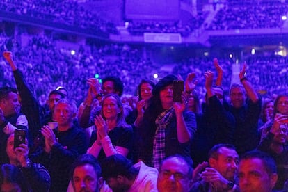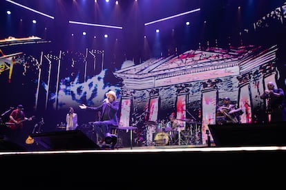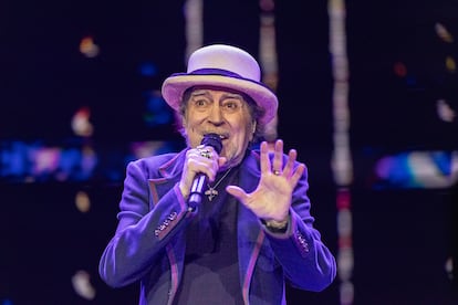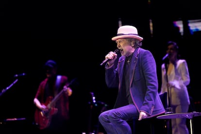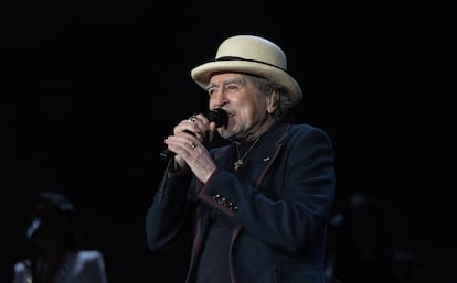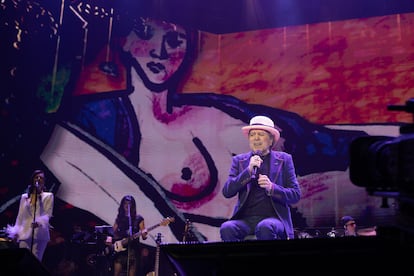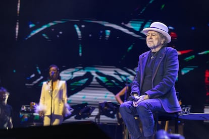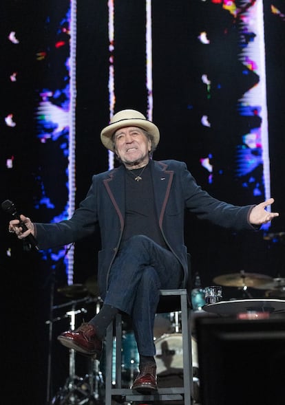 Se guarda el maestro “el as de reaparecer a placer, sea porque las musas me susurren poemas o canciones que merezca la pena compartir, o porque me piquen las ganas de subirme a cualquier entarimado para darme, darnos, un homenaje”. El entrecomillado pertenece al protagonista y lo dijo al anunciar esta serie de conciertos. Lo que parece seguro es que las grandes giras se han acabado, así que lo de anoche pintó mucho como algo parecido a un réquiem, una coda a una carrera soberbia, con sus resbalones, sí, pero quién no cayó en un camino que dura ya cinco décadas. Y tuvo que ser un domingo, ese día de la semana que no le gusta al protagonista, como luego cantó en Contigo (“yo no quiero domingos por la tarde”), pero se celebró en horario nocturno, cuando los ataques de melancolía se hacen más llevaderos.
