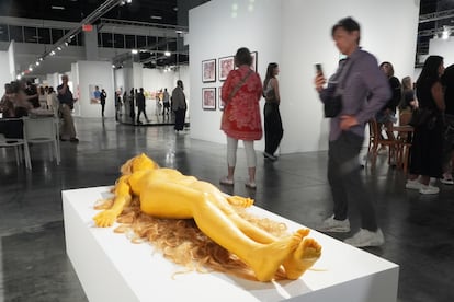 ABMB partía, por tanto, de una posición vulnerable, porque si algo ha caracterizado esta feria ha sido la especulación y el riesgo (aquí fue donde en 2019 se vendió por 120.000 dólares el polémico plátano The comedian, de Maurizio Cattelan). Un riesgo que durante todo el año los coleccionistas no parecían querer asumir. El miércoles, día de la apertura VIP, los galeristas mostraban un optimismo cauteloso; no se habían realizado muchas preventas, como en años previos, pero había mucho interés por parte de los coleccionistas.