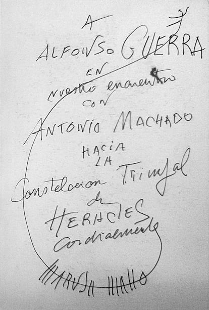 Hay dos de las Cartas de Maruja Mallo que tienen un toque diferente a las demás. La de agradecimiento que Antonio Machado envía a la pintora a su exilio en Buenos Aires desde Barcelona, el 1 de octubre de 1938, cuando él también va camino de su exilio francés. Con una anotación de Cristino Mallo, escultor y hermano de la artista, que indicaba que había que guardar ese documento: que lo señale puede significar que su hermana no conservaba estos escritos y este lo merecía por la importancia del remitente.