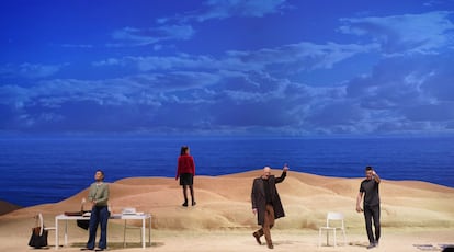 Rigola firma también la dirección de escena, trasladada a la actualidad y ambientada en una playa soleada, con escenografía y vestuario de Patricia Albizu, vídeo de Álvaro Luna e iluminación de Carlos Marquerie, que evoluciona hacia tonalidades cada vez más grises, rojizas y oscuras a medida que avanza la acción.