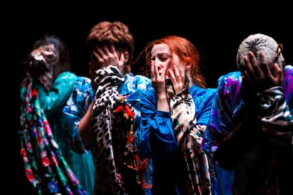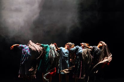 Las referencias dancísticas, a nivel de movimiento e incluso estética, también son muy reconocibles. Ahí está esa gestualidad, individual y grupal, de la obra May B (1981) de Maguy Marin, coreógrafa con quien ha trabajado Leïla Ka. La estética de Pina Bausch e incluso pasos concretos del Fase (1982) de la coreógrafa belga Anne Teresa de Keersmaeker (ese giro con el brazo derecho extendido). Tal vez como homenaje, no se dice nada de esto en la información que hay sobre Maldonne. Pero el posible tributo a estas tres coreógrafas podría casar con ese discurso feminista que sí se anuncia en el programa para contar lo que vertebra al espectáculo. “Cinco mujeres y cuarenta vestidos”, es la frase más usada en los textos de promoción que acompañan al montaje. Y aunque la denuncia y la exposición del sometimiento de las mujeres, que aún se sufre, está y adquiere verdadera revelación y fuerza cuando se encarna en la rabia, tampoco consigue rascar hacia capas más profundas y lo anecdótico sobrevuela la mayor parte.