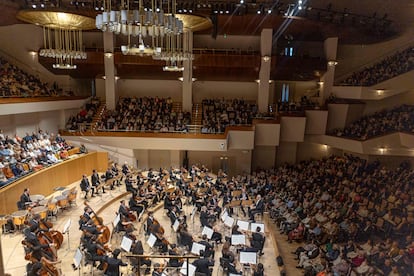 El maestro indio adoptó una nueva disposición para la orquesta, con el viento madera y las trompas delante de la cuerda y alrededor del podio, que ya utilizó en 2024 con la Filarmónica de Belgrado.