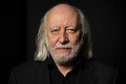 Aureolado por el Premio Nobel de Literatura y por los mechones de pelo blanco que —junto a la barba cana y los ojos de un azul tan puro que hieren— le dan un aspecto de apóstol o profeta, el escritor húngaro László Krasznahorkai (Gyula, 72 años) recibe en el bar del hotel Alma tras haberse dado el día antes un insólito, para un autor tan depurado y exigente como él, baño de multitudes en el Centro de Cultura Contemporánea de Barcelona (CCCB). El autor de Tango satánico y Melancolía de la resistencia, vestido completamente de negro y sorprendentemente bronceado, está de un humor excelente y se muestra cercano y afable, aunque se ensombrecerá al hablar de la situación política de su país. Poner sobre la mesa un ejemplar de su libro Trabajo preliminar para un palacio (aún no traducido al castellano), protagonizado por un librero homónimo de Melville, sirve para arrancar la conversación recuperando una discusión mantenida en 2024 en Marraquech en las Conversaciones literarias de Formentor sobre el significado de la ballena que aparece en Melancolía de la resistencia.