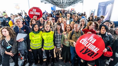 Al grito de “¡IVA Cultural ya!”, artistas como Concha Jerez, han recordado que un comprador que desde este miércoles al domingo compre una pieza en una galería de Italia, se le aplicará un tipo del 5%, o en una francesa, de un 5,5%. Mientras que si quiere adquirir una obra de ese mismo creador en un espacio español tendrá que sumarle al precio una tasa del 21%. “No hay diálogo entre Hacienda y Cultura”, explican desde el Consorcio de Galerías, “esto está estancando y no vemos ninguna intención de que se vaya a retomar”. El colectivo anuncia más protestas durante la feria, pero por el momento no se han concretado. “Apoyamos a nuestros clientes”, ha dicho López sobre estas acciones, en las que Arco no participará.