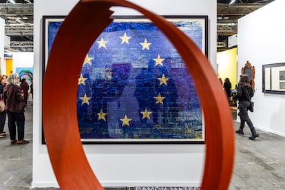 A las 9.00 de la mañana, Pedro Sánchez respondía a la amenaza de Donald Trump de cortar toda relación comercial con España con cuatro palabras: “No a la guerra”. A las 11.00, también en Madrid, se inauguraba la 45º edición de Arco. Solo una galerista de Dubái no ha podido llegar a la gran feria internacional de arte contemporáneo debido al ataque estadounidense e israelí contra Irán, cuyas consecuencias ya se extienden por toda la región. El resto de los invitados, eso incluye a compradores de todo el mundo, está aquí, en Ifema, dispuestos un año más a gastar en obras. Y a tenor de la muchedumbre que poblaba este primer día los dos pabellones en los que se despliega la feria, no parecía haber obstáculo alguno para la negociación y la compra. ¿Cómo puede afectar la nueva incursión bélica de EE UU en Oriente Próximo a una cita como esta? “Es demasiado pronto para saberlo”, ha contestado Maribel López, directora de Arco. “El arte nos aporta esperanza y la idea de posibilidad”, ha zanjado la gestora cultural.