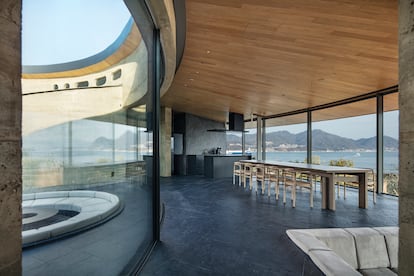 Las tres viviendas de 'NOT A HOTEL Setouchi' junto al mar de Seto están construidas con la técnica de tierra apisonada.Kenta Hasegawa