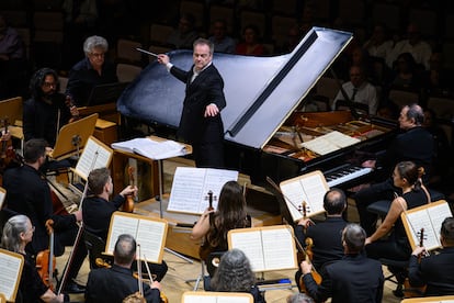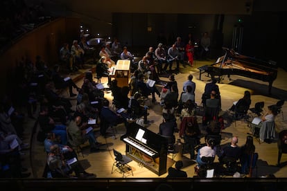 Aimard inició su residencia en el CNDM el pasado 30 de octubre, con un admirable concierto de cámara en torno al Cuarteto para el fin del tiempo, de Messiaen, junto a la violinista Isabelle Faust, el violonchelista Jean-Guihen Queyras y el clarinetista Jörg Widmann. Después llegaron un recital para dos pianos con su discípulo Lorenzo Soulès, otro en solitario dedicado a Kurtág y Bach, y una actuación en el Ciclo de Lied con la soprano Anna Prohaska. Esta semana la ha culminado con la Sinfonía Turangalîla, aunque precedida, el martes 21, por otro “jardín de las delicias”.