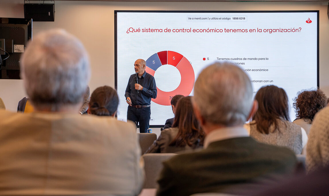 Arranca la primera clase de la mañana y el consultor José Luis Herrero lanza varias preguntas: “¿Tenéis planes financieros?, ¿cómo gestionáis vuestra información económica?”. Los participantes escanean un QR y responden, en un debate que luego se traslada de viva voz a las butacas, y que deja claro que las entidades comprenden el papel trascendental de los departamentos económicos en la toma de decisiones, pero también se ven a menudo abrumadas por las muchas horas que estas cuestiones les roban.