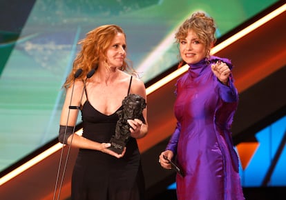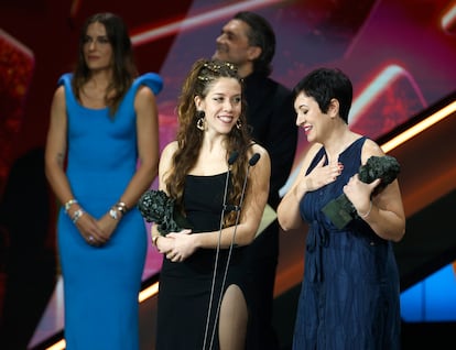 Alberto Estévez (EFE) El director Gonzalo Suárez recibe el Goya de Honor junto a la actriz portuguesa María de Medeiros.Massimiliano MinocriOriol Maymó tras ganar el Goya a mejor dirección de producción por Sirât.Massimiliano MinocriAlba Flores y Sílvia Pérez Cruz ganan el Goya a mejor canción original por Flores para Antonio.Massimiliano MinocriAna López-Puigcerver, Belén López-Puigcerver y Nacho Díaz tras ganar el Goya a mejor maquillaje y peluquería por El cautivo.Massimiliano MinocriDolores Fonsi (derecha) tras ganar el Goya a mejor película iberoamericana por la argentina Belén.Massimiliano MinocriToni Fernández Gabarre gana el Goya a mejor actor revelación por Ciudad sin sueño.Massimiliano MinocriBARCELONA, 28/02/2026.- Un momento de la actuación de la cantante Ángeles Toledano durante la ceremonia de entrega de la 40 edición de los Premios Goya celebrada este sábado en el Auditorio Forum CCIB de Barcelona. EFE/Alberto Estévez