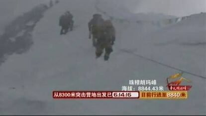 El momento histórico ha tenido lugar a las 9.18d (las 3.18 hora peninsular española), después de que el equipo de escaladores iniciara el ascenso desde el campamento base de avance, a 8.300 metros de altitud, a las 3.00 de la madrugada. Ci Ren Wang Mu, una montañera de etnia tibetana de 19 años, ha sido la quinta y última relevista en el ascenso y la encargada de llevar la antorcha a la cima del monte, conocido en China y en el Tíbet como Qomolangma, según la retransmisión en directo por el canal de televisión estatal Televisión Central de China 4 (CCTV4). Según las imágenes, el histórico ascenso al pico, envuelto en una espesa niebla, ha sido muy dificultoso y emotivo, y algunos montañeros han llorado al culminar el Everest.