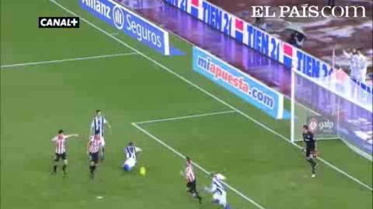 El Athletic en la banqueta de Anoeta sueña con un diván que le explique por qué es tan mal equipo en la defensa, por qué San José concede un penalti en una jugada absurda, en un centro débil, llovido, medio muerto, lastimero. Va y pone la mano donde no hacía falta, donde sobraba hasta el dedo meñique. Y Xabi Prieto marca con paradinha, bien hecha, aunque el árbitro la juzga ilegal, le amonesta y le da la segunda oportunidad: cambio de planes, golpe directo al otro lado y gol de nuevo.