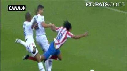 El Tigre es un peligro mortal. Primero provocó un penalti de libro de Botía que Iturralde González no pitó. Un minuto después le ganó la posición a Cuéllar en un saque de esquina botado al segundo palo: el gol lo anuló también Iturralde, que entendió falta donde no hubo nada (Falcao había arrollado a Salvio en su búsqueda de la pelota). Los fallos arbitrales no le acongojaron: a la media hora originó el gol en propia meta de Lora, cuando el lateral intentó despejar un remate cruzado del colombiano. Ya en la segunda parte, insaciable, con hambre para dar y tomar, chutó al palo y marcó el tercer y cuarto gol con una exhibición de técnica y control que cerró cualquier debate. Es lo que tiene contar con una fiera como Falcao: el Atlético ya no necesita para ganar rizar el rizo y ser la alegría de la huerta. Cuando no la toca como los ángeles recurre al genio del fichaje más caro de la historia de la casa. Así pasó en el definitivo gol, también a pase de Gabi como en el penúltimo del Atlético.