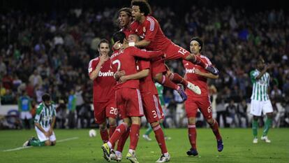 La diana no produjo mutación alguna en el Betis, que nunca fue tacaño. Con sus cuatro futbolistas ofensivos (Sevilla, Castro, Molina y Montero), mantuvo el mismo guion. Un paisaje poco habitual para el Madrid, acostumbrado a que sus rivales se enclaustren con un gol y sin él. Y, al mismo tiempo, una bendición. El Betis siempre le dejó campo abierto. Como el Madrid no es un equipo de tránsito, se jugó las habichuelas a la carrera. Así se deleita. Rajado el medio campo, donde Mel se basta con Iriney y Beñat, inmensos ambos, el Madrid encontró aire como le gusta. En un suspiro, Özil citó a Higuaín a la carrera. Paulao rompió el fuera de juego y, con el turbo encendido, El Pipita barrenó la pelota. Un golazo, el 17º del argentino.