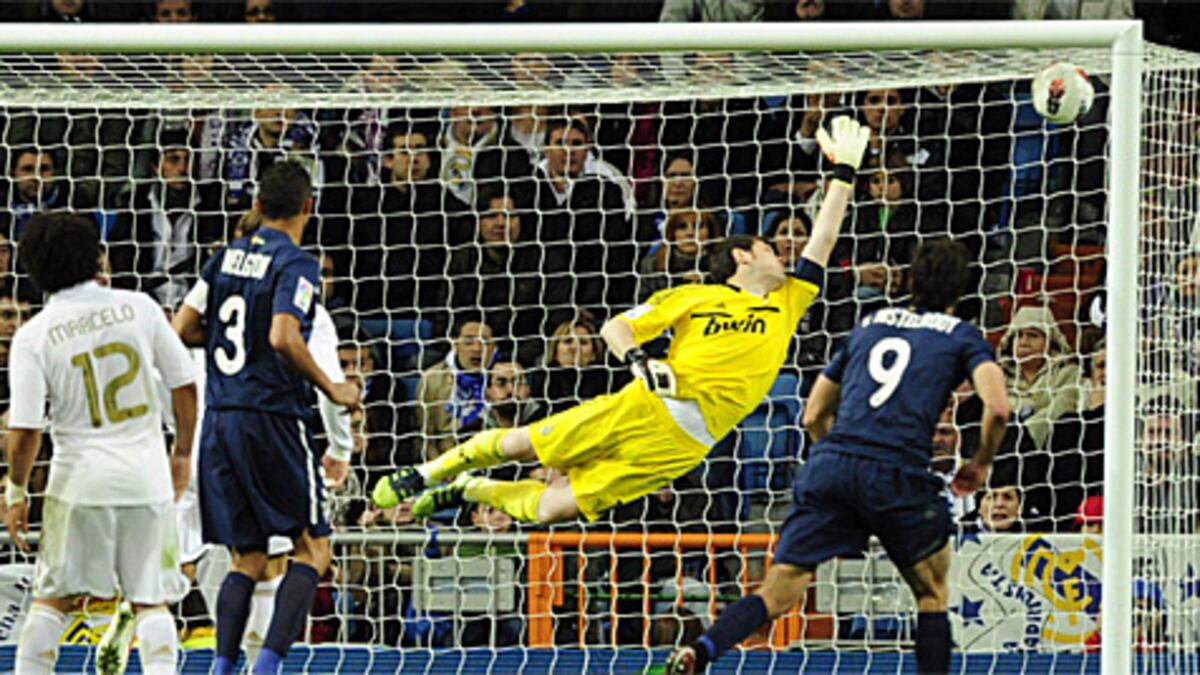El Málaga parecía vencido pero el viejo Cazorla, veterano de otras depredaciones en Chamartín, dio el zarpazo en el tiempo de descuento. Fue en el lanzamiento de una falta al borde del área. Contra su costumbre, acarició la pelota con el interior para que el tiro envolviera la barrera. Casillas, que esperó el envío a su derecha, dio un paso en falso antes de intentar corregirse. El balón fue tan ajustado que rozó los dos palos de la escuadra. El gol dejó helado a un Bernabéu que ya acariciaba su duodécima victoria consecutiva en Liga. Fue el empate imprevisto de un partido que casi doblega al Málaga ante un Madrid sin claridad, intimidatorio pero impreciso.