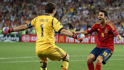 Del tanto de Cesc en el estreno ante Italia a la tanda de penaltis frente a Portugal ● Repase las dianas de la selección en el torneo