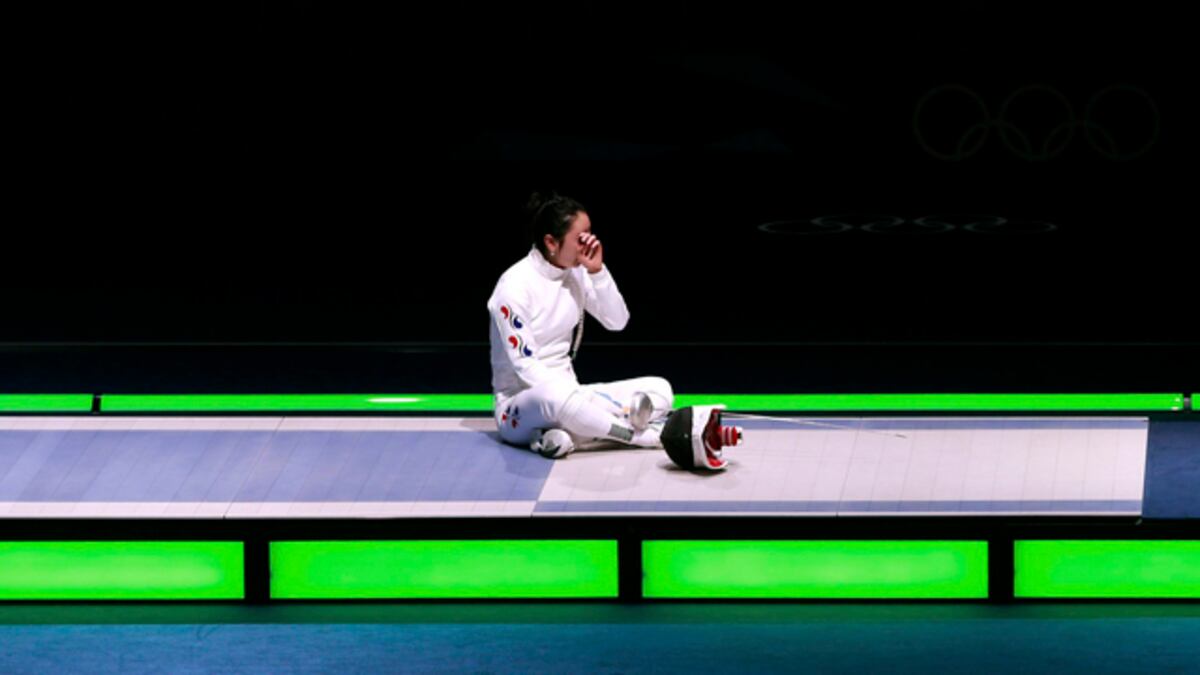 Más o menos a la misma hora en la que los jueces del pabellón de la gimnasia ‘rescataban’ a Uchimura y a Japón (de cuartos a medalla de plata), en la pista del ExCel de la esgrima, la surcoreana Shin a Lam dejaba una de las imágenes de estos Juegos. Sentada en la pista lloraba desconsolada. Lo hizo durante casi una hora, negándose a moverse de allí, incapaz de marcharse a los vestuarios y dejar que sus rivales compitieran por el oro y la plata. Ella no lo pudo hacer. Por un error de la ‘time keeper’ –la persona que se encarga de poner en marcha el cronómetro- y por la posterior decisión de los jueces.