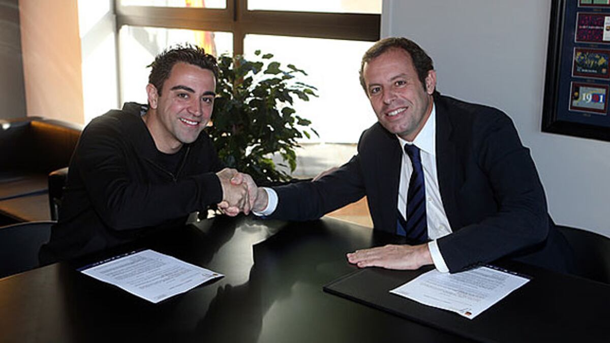 Azulgrana para siempre. Xavi firmó hoy el nuevo contrato que le vinculará al Barcelona hasta el 30 de junio de 2016. Entonces tendrá 36 el centrocampista catalán, ligado desde su infancia al club y con el que ha alzado numerosos títulos."Es un día especial, ya que son más años en el Barça, que es donde quiero estar. La primera decisión siempre ha sido quedarme aquí. El club ha hecho un esfuerzo y lo agradezco. Intentaré dar el rendimiento de los últimos años", ha explicado el de Terrassa.