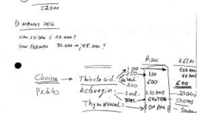 Si para la acusación lo importante del papel estaba en su parte superior, para los presentes resultaban más misteriosas las inscripciones inferiores de un papel con letra de Fuentes referido al año 2003. Así, el mundo se quedó sin saber qué significaba el RSOC (¿un equipo?) que encabezaba una columna paralela a otra llamada KELM con cifras que parecen ser las de un pedido de diversos medicamentos al proveedor de Fuentes en Alemania, Markus Choina.