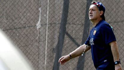 Gerardo 'Tata' Martino, entrenador del Barcelona, ha asegurado antes del estreno liguero del Barcelona ante el Levante (domingo, 19.00, ante el Levante) que está satisfecho con su zaga. “Con los centrales que tenemos estamos bien". "En realidad estoy esperando la llegada de Puyol. Gracias a Dios, su recuperación va muy bien, está trabajando en el campo con mucha intensidad y esperamos que empieza a entrenarse con el grupo en septiembre, después de la próxima fecha FIFA".