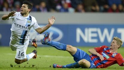 El Kun Agüero disputa un balón con Prochazka. VÍDEO: CANAL+Foto: ligadecampeones | Vídeo: FILIP SINGER