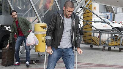 El portero del Barcelona, que en enero cumplirá 32 años, notó un tirón en el partido amistoso que la selección española jugó el martes contra Sudáfrica en Johanesburgo. Hizo un sprint para salir del área y se rompió. E inmediatamente supo que no era un simple pinchazo. El juego no se interrumpía, así que se tiró al suelo. La primera observación de los médicos de España ya preveía una rotura muscular y mes y medio de baja. Y el diagnóstico no tardaría en confirmarse. Valdés fue el primero en salir del vestuario. Con muletas. Y con ellas aterrizó ayer en Barcelona —en un avión privado—, donde los doctores del equipo azulgrana coincidieron en el pronóstico inicial. El portero del Barça sufre una “rotura miotendinosa proximal al gemelo interno de la pierna derecha”, según confirmó el club.