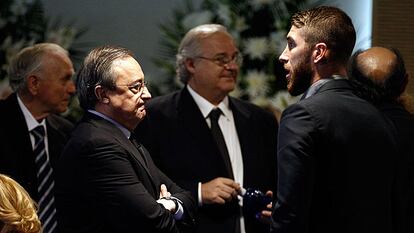 Florentino Pérez y Sergio Ramos en la capilla de Di Stéfano.Foto: atlas | Vídeo: Atlas / Luis Sevillano