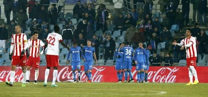Con el 1-1 de la ida, el Getafe parecía conforme con el 0-0 con el que se inició el partido. Eso bastaba y con el Real Madrid en el horizonte, mejor no arriesgar demasiado. Eso es lo que parecía. Los canteranos Carlos Vigaray, Emiliano Buendía, Alex Felip y Pere Milla lo intentaron con mucho empeño pero sin mucho éxito. El Almería, bien cerrado atrás, y expectante de alguna jugada aislada para abrir el marcador y romper la eliminatoria, tampoco era el mejor equipo contra el que un futbolista del filial puede mostrar sus cualidades. Todo era frío sobre el césped del Coliseum y eso se contagió a todo el mundo.