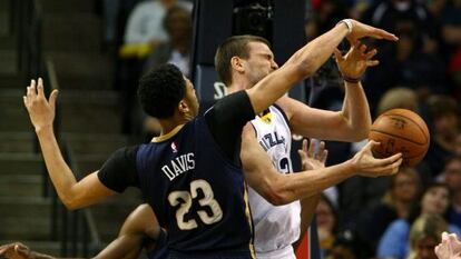 Los Grizzlies exhibieron una tremenda superioridad sobre los Pelicans (110-74). Marc Gasol y Randolph mantuvieron a raya a la pareja interior de los de Nueva Orleans. Anthony Davis solo pudo sumar 12 puntos y 5 rebotes y Asik, 5 puntos y 6 rebotes. En cambio, los dos bastiones del juego interior de los Grizzlies sumaron 15 puntos y 6 asistencias cada uno, además de 13 rebotes Randolph, y 8 Marc Gasol.