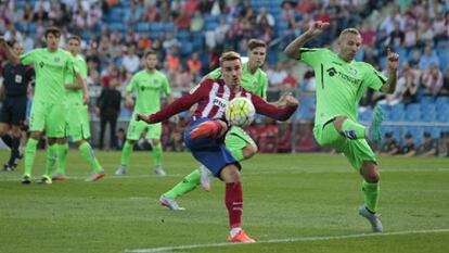 Hubo partido hasta que llegó el gol de Griezmann. Y el francés lo marcó a los tres minutos. Hasta ahí aguantó el Getafe, una sombra durante todo el encuentro, incapaz de contabilizar las camisetas rojiblancas que tenía enfrente. Como quien observa una marabunta, pero es incapaz de hacerle frente. Y en ese terreno el Atlético es una fiera peligrosa. Cuando el conjunto de Simeone identifica el partido, y no suele tardar demasiado en hacerlo, hay poco margen de maniobra para quien se le ponga por delante. Y el Getafe no fue una excepción.