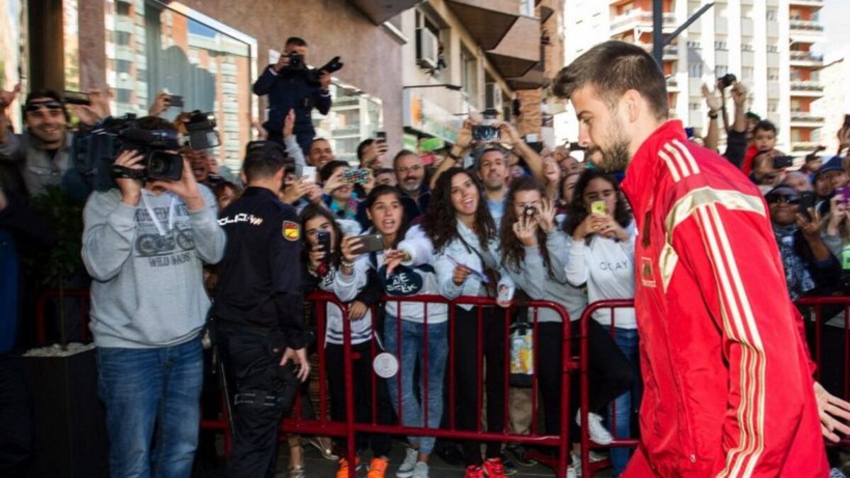 Gerard Piqué, una vez más, acaparó la mayor parte de protagonismo en el recibimiento que los aficionados riojanos dispensaron a la selección en Logroño. Cuando los internacionales de La Roja descendieron del autobús para concentrarse en un céntrico hotel de la capital riojana, los 200 seguidores que se agrupaban en torno a la entrada comenzaron a aplaudir.
