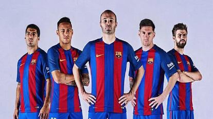 La nueva piel del Barcelona tiene un tinte nostálgico. Sin publicidad en el pecho e inspirada en la equipación que lució el conjunto azulgrana en la temporada 1991-1992, cuando ganó su primera Copa de Europa, el Barça presentó en sociedad su nueva camiseta, que utilizará en la temporada 2016-2017. Nike diseñó una zamarra en la que recuperan las franjas verticales (el curso pasado fueron horizontales) y en la que se alternan los tradicionales colores azul y rojo con unos matices más claros de las mismas tonalidades.
